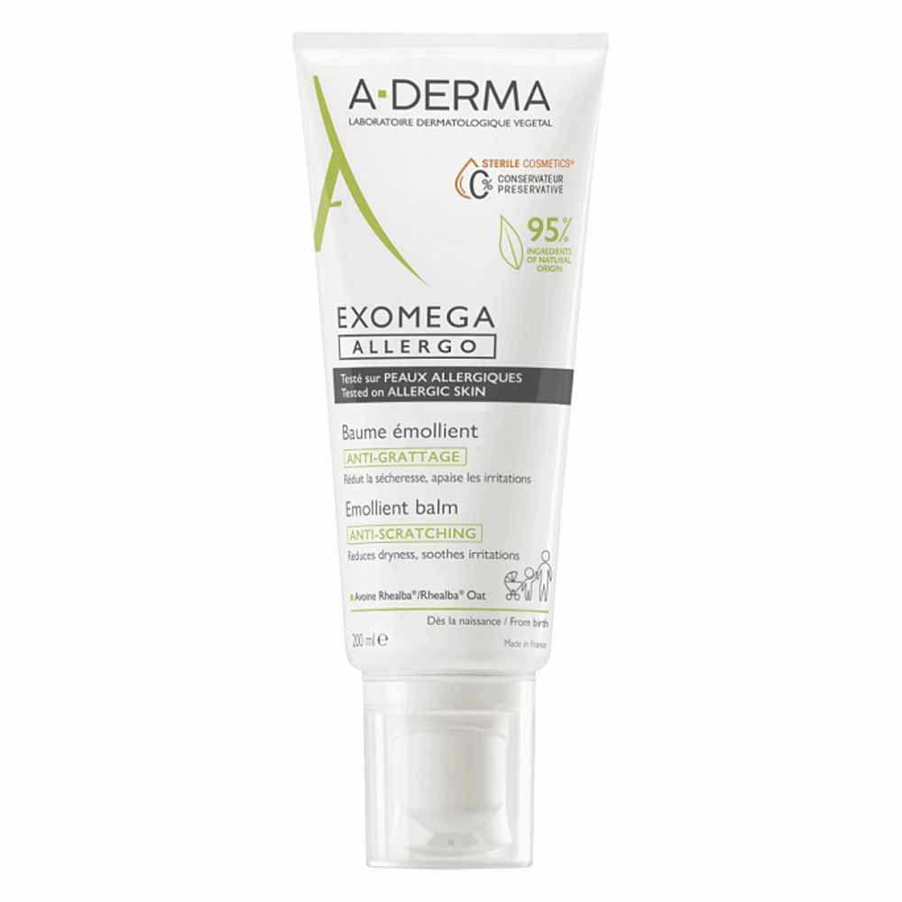 A-derma Exomega Allergo emolientni blazam je namenjen osebam, ki se soočajo s suho kožo, ki je nagnjena k atopijskemu dermatitisu, alergijam in alergijskemu ekcemu na koži obraza, telesa in očesnih vek. Prav tako je izdelek A-derma Exomega Allergo emolientni blazam namenjen osebam, ki imajo zaradi različnih težav (npr. astma, alergija na hrano) lahko izražene reakcije tudi na koži. Izdelek je namenjen tudi negi kože za dojenčke od rojstva dalje. Izdelek je zasnovan s tehnologijo Sterile Cosmetics, zato ne vsebuje konzervansov. Zasnovan za čim manjše tveganje alergijskih reakcij in omogoča visoko toleranco.
