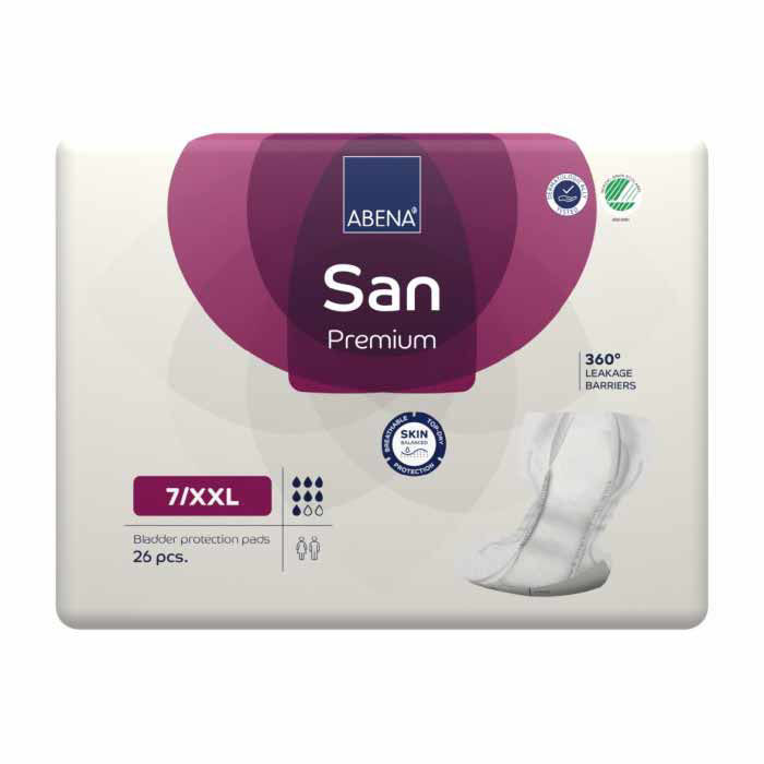 Abena San Premium 7/XXL vpojne predloge omogočajo optimalno udobje in diskretnost. Primerne so za vse, ki potrebujejo visoko zaščito pred iztekanjem. Zračnost materialov preprečuje težave s kožo. Mehke in učinkovite vzdolžne zaščite pred iztekanjem urina. Abena San Premium 7/XXL vpojne predloge nosijo oznako FSC, kart pomeni, da so proizvedene iz surovin, pridobljenih iz dobro oskrbovanih gozdov in odgovornih virov. Sledljivost in integriteta te oznake temeljita na strogih nadzornih ukrepih.