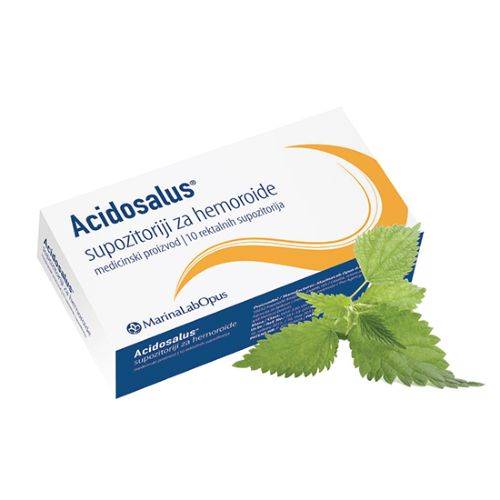 Acidosalus supozitoriji za hemoroide temeljijo na kombinaciji vodne osnove in ekstrakta bodeče lobodike, koprive in mikroorganizmov Lactobacillus acidophilus (La-5).