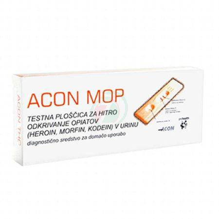 Acon MOP urinski test na kokain je precizen test namenjen hitremu preverjanju metabolitov nekaterih opiatov v samem urinu.