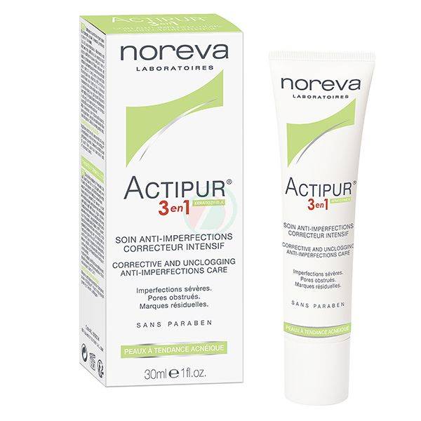 Actipur krema 3v1 omogoča ciljano nego proti določenim nepravilnostim, ki se pojavljajo pri mastni občutljivi koži: rdečica, ogrci, akne. Keratozin A je ena izmed vodilnih molekul na področju nege proti aknam - odpravlja ogrce, nadzira izločanje sebuma ter preprečuje temne madeže kože, ki so posledica aken. Patentiran kompleks fitosfingozin in vitamin PP deluje regenerativno in hitro blaži področja aken. Mikrogobice in vlažilci omogočajo koži hitro in dolgotrajno matiranje ter vlaženje.