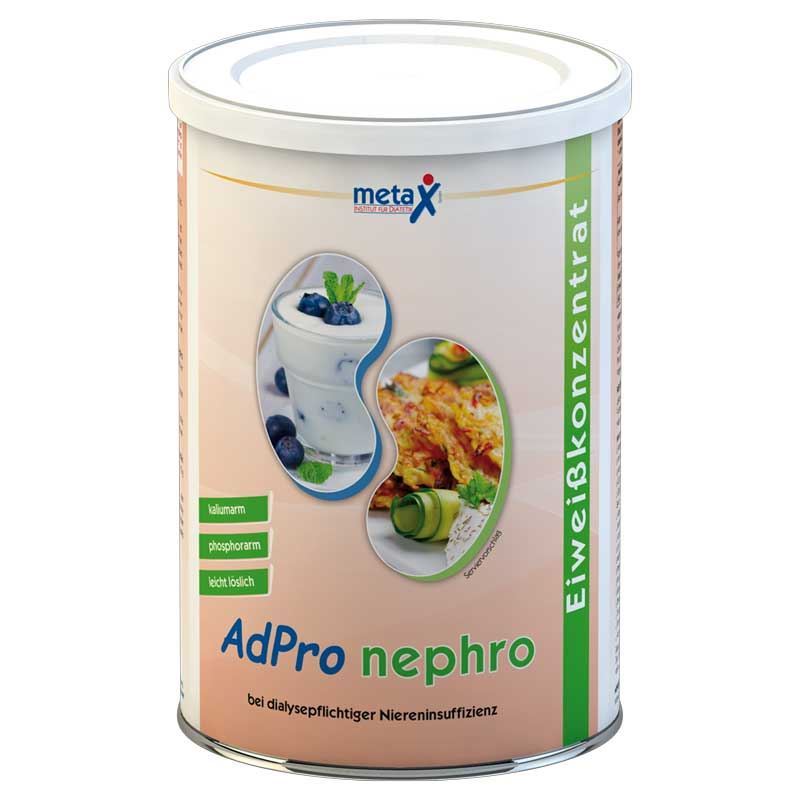 AdPro nephro je primeren za dopolnitev dnevne potrebe po beljakovinah pri povečanih potrebah ali pa pri nezadostnem vnosu beljakovin preko običajne prehrane, kadar sočasno omejujejo vnos kalija in fosforja. Primerno za uporabo od 1. leta starosti.