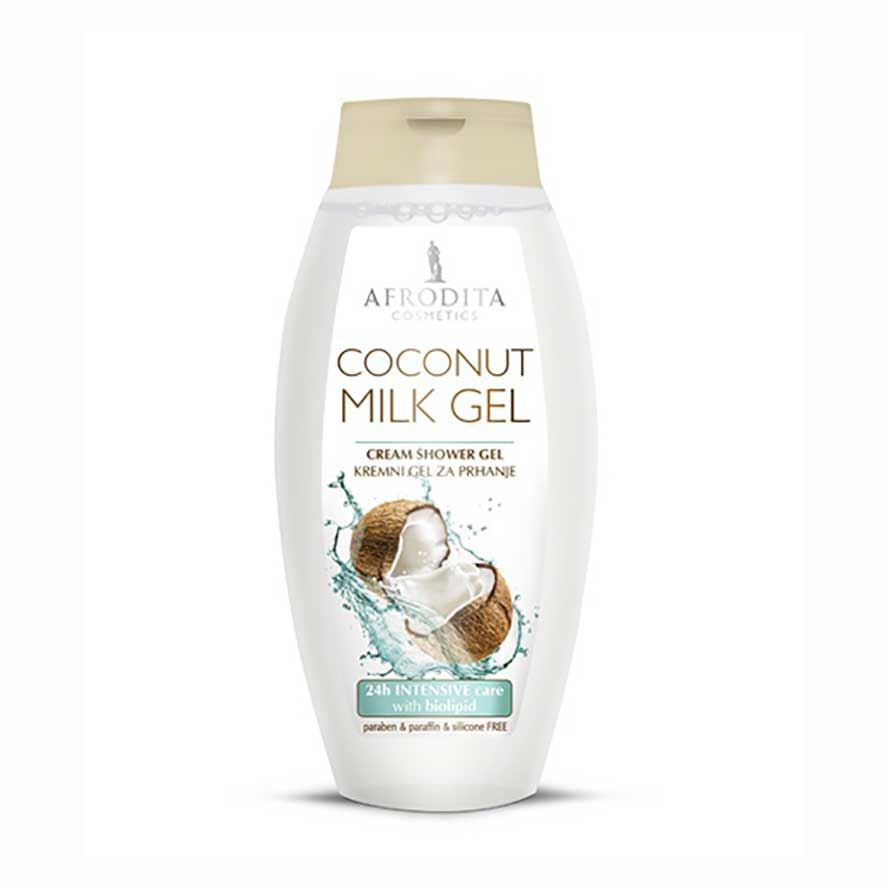 Presenetila vas bo kombinacija prijetnega eksotičnega vonja in izjemne učinkovitosti kremnega gela za prhanje Coconut Milk Afrodita.