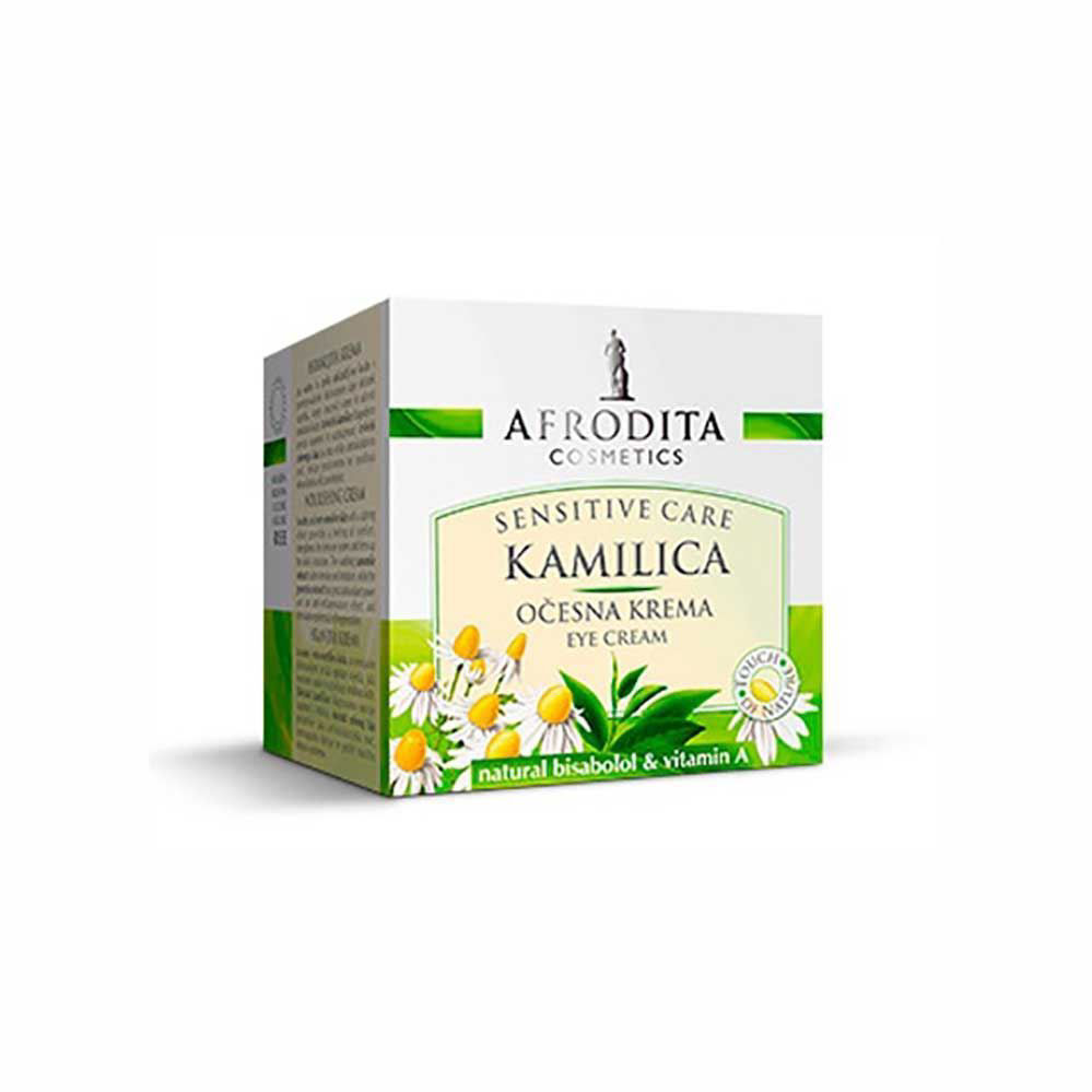 Afrodita Kamilica Sensitive očesna krema je izredno nežna krema za negovanje občutljive kože na predelu okoli oči.