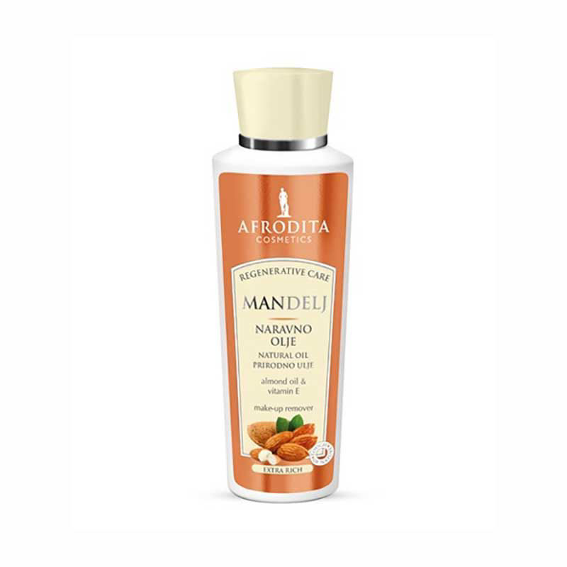 Naravno mandljevo olje Afrodita je bogato negovalno olje. Mandljevo olje in pozitivni učinki mandlja na kožo, veljajo za eno boljših odkritji človeštva. Mandljevo olje je bogato z oleinsko in linolno maščobno kislino hkrati pa vsebuje vitamine A, B1, B2, B6 in vitamin E.