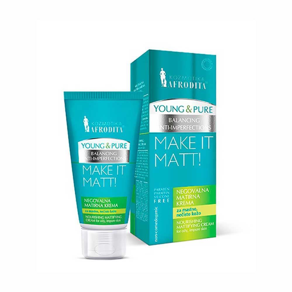 Afrodita Young & Pure negovalna matirna krema bo vašo kožo optimalno navlažila in ji dala lep mat videz.