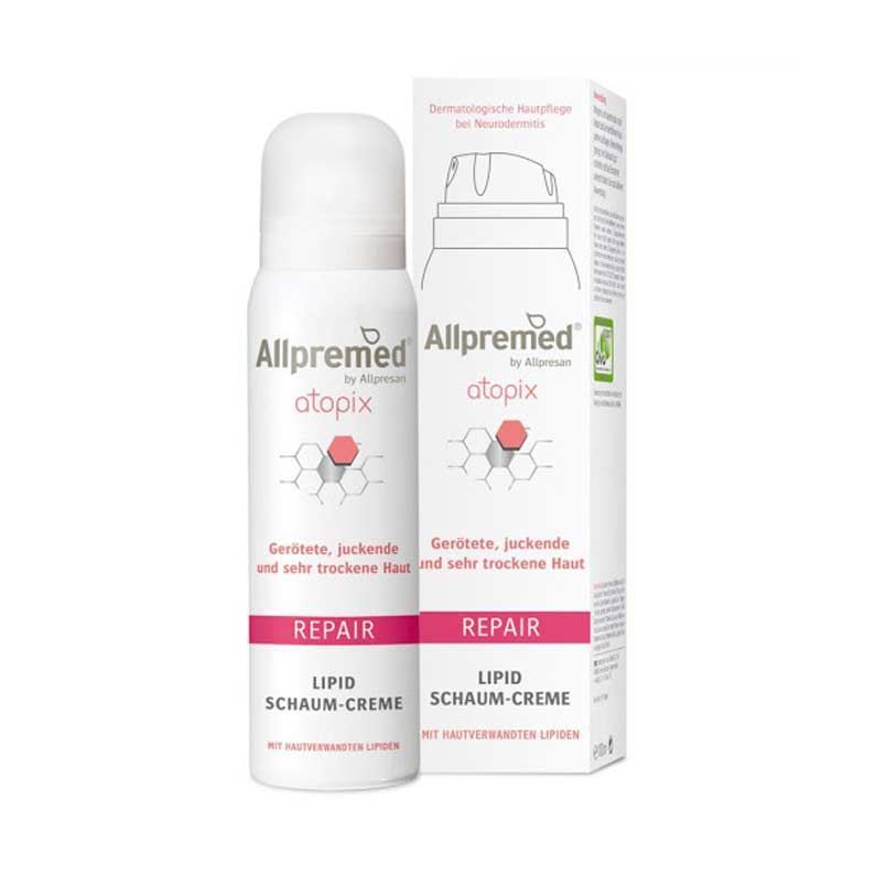 Kremna prena Allpresan derma med atopix repair je namenjena negi zelo občutljive kože, pordele, srbeče ter izredno suhe kože, še posebno kreme nagnjene k atopijskemu dermatitisu. Izdelek učinkuje izrazito blažilno, zmanjšuje srbečico, s svojim patentom BarrioExpert LIPO2 Skin-repair pa popravlja poškodovano kožno bariero ter nasplošno izboljša stanje kože. Kremna pena se s svojo tehnologijo ter koži sorodnimi lipidi vgradi v kožno bariero ter jo tako obnovi, okrepi ter zaščiti.