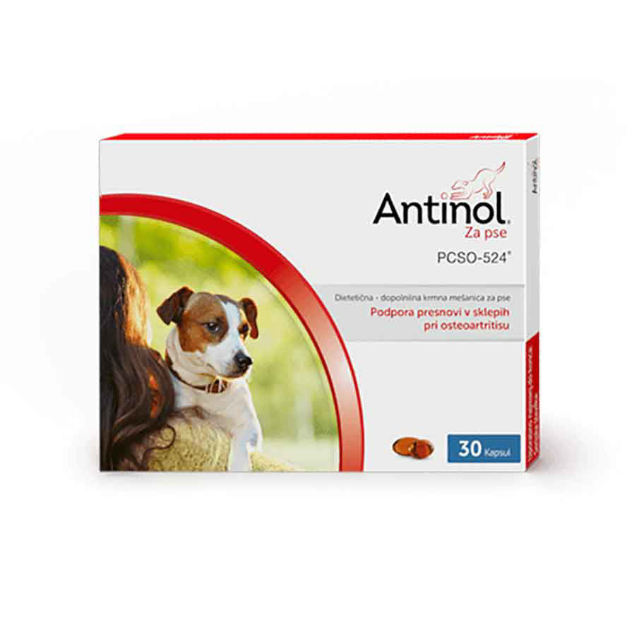 Revolucionarna rešitev za vse pse, ki imajo težave z osteoartitisu je nova dietično-dopolnilna krmna mešanica Antinol za pse. V dopolnilu je dodan patentiran kompleks PCSO-524. Dodan je še močan lipidni ekstrakt pridobljen iz novozelandske zelenouste školje Perna canaliculus.