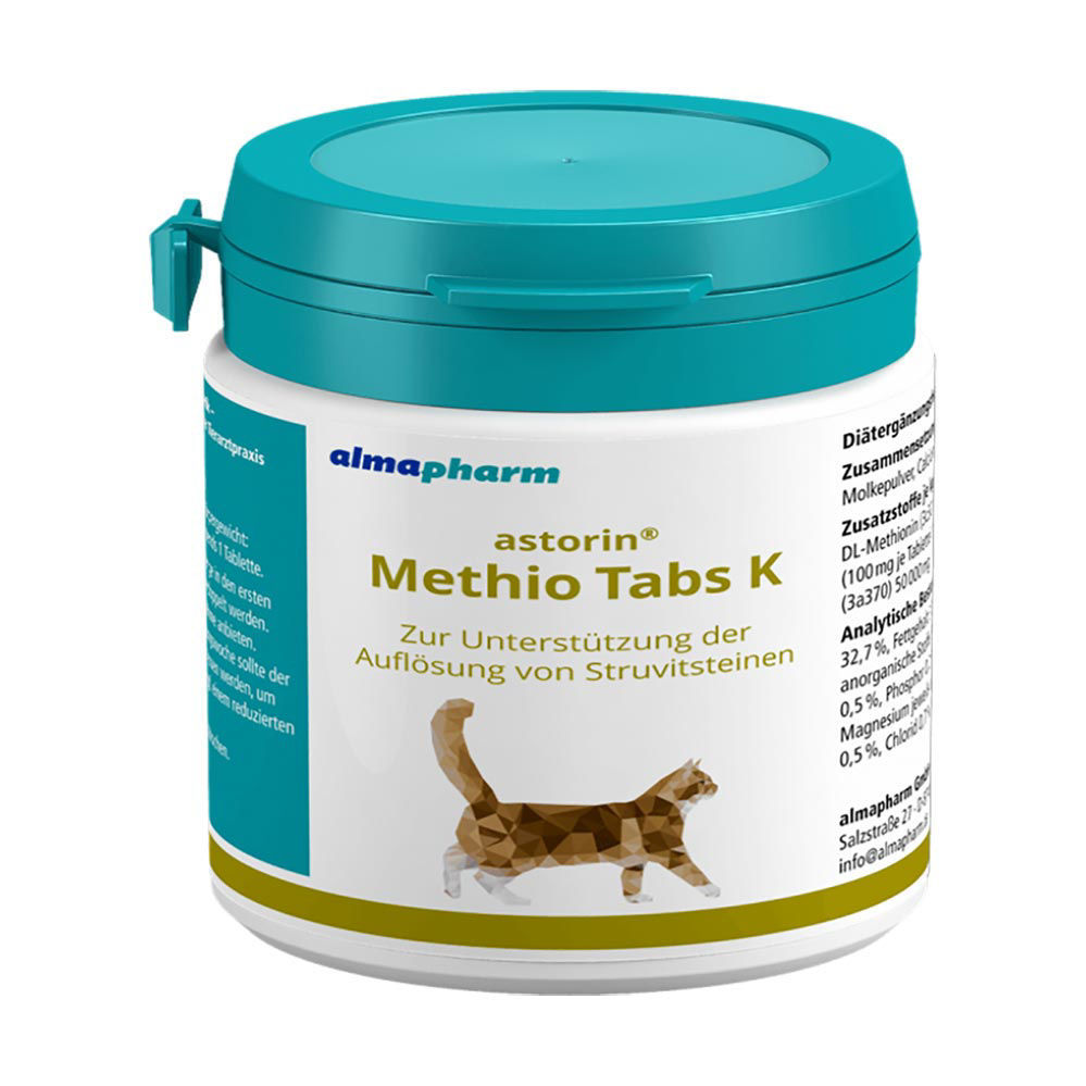 Če bi želeli svoji mački pomagati in ji omogočiti podporo pri odstranjevanju in preprečevanju nastanka struvitnih sečnih kamnov, preizkusite dopolnilo v obliki tablet Astorin methio tabs.