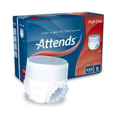 Attends Pull-Ons so izredno vpojne in elastične hlačne plenice, ki jih je mogoče nositi kot običajno spodnje perilo. Enostavno oblačenje in slačenje zagotavlja večjo samostojnost uporabnika ter olajša delo oskrbovalnemu osebju.