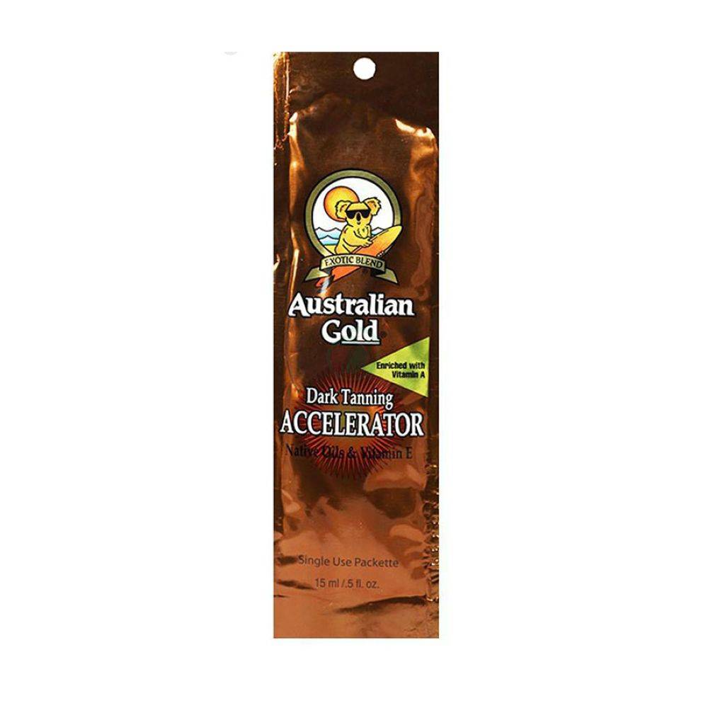 Australian Gold Accelerator losjon je obogaten z izjemnimi botaničnimi esencami, ter nativnimi avstralskimi olji. Intenzivno hranilna negovalna olja priskrbijo koži vašega telesa intenzivno obarvanje ter prijeten zapeljiv ten.