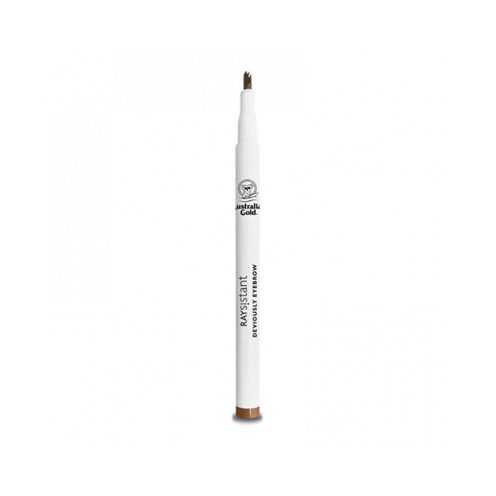 Australian Gold RaySistant Deviously Eyebrow svinčnik za obrvi temelji na vodni osnovi. V sestavi se nahaja tudi vitamin E ter izvleček aloe vere. Vaša koža pod obrvmi bo zato dobro navlažena, pore pa se ne bodo zamašile.