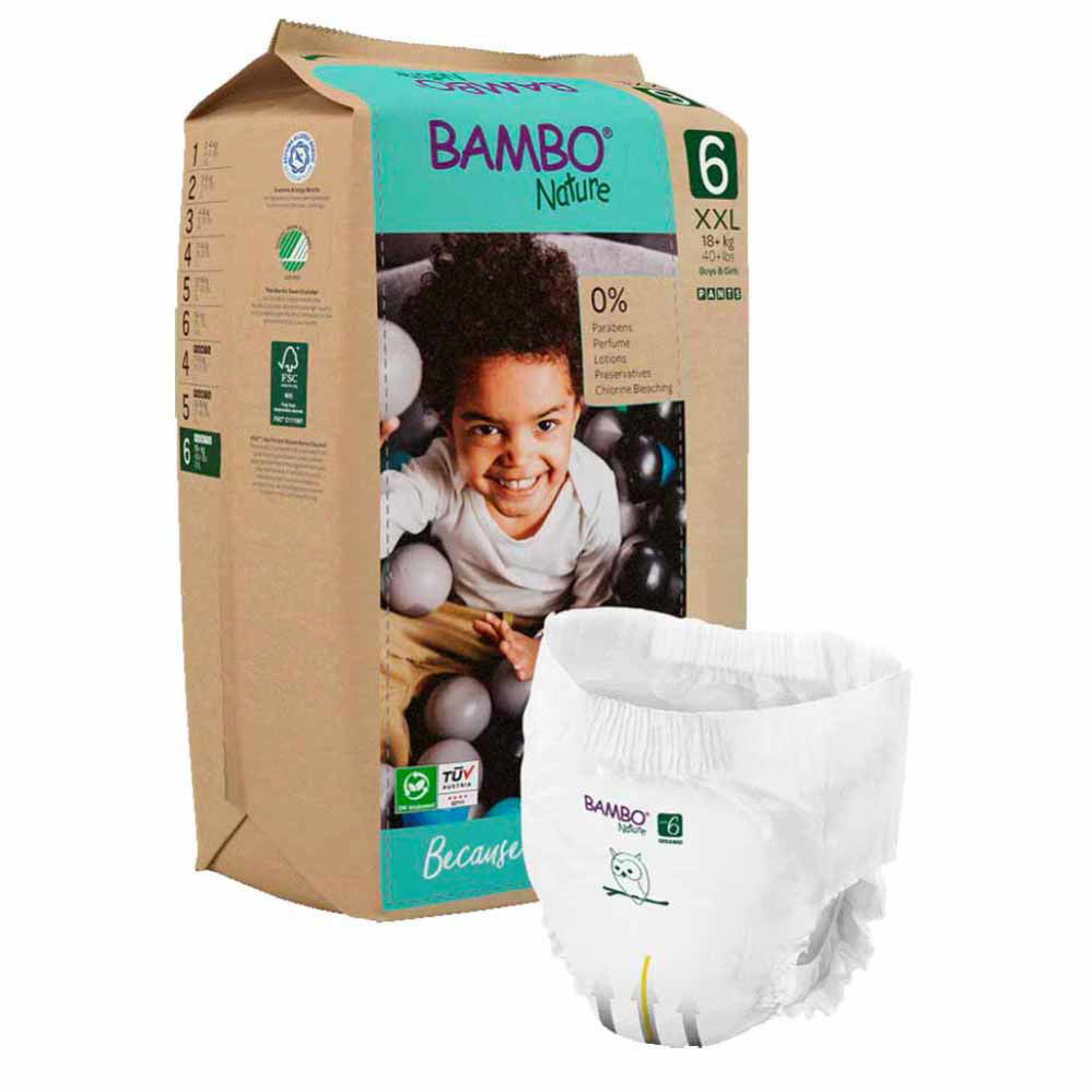 Bambo Nature hlačne pleničke so mehke in udobne ter poskrbijo, da tudi najobčutljivejša otroška koža ostane suha. Bambo Nature hlačne pleničke se dobro prilegajo telesu in zato ne ovirajo otrokovega svobodnega gibanja. V svoji zasnovi imajo izjemno vpojno jedro. Najnovejša tehnologija vpojnih kanalčkov odvaja vlago od dojenčkove kože in zadrži tudi večkratno močenje – celo ponoči. Bambo Nature hlačne pleničke so dermatološko testirane in skladne z različnimi okoljskimi standardi.
