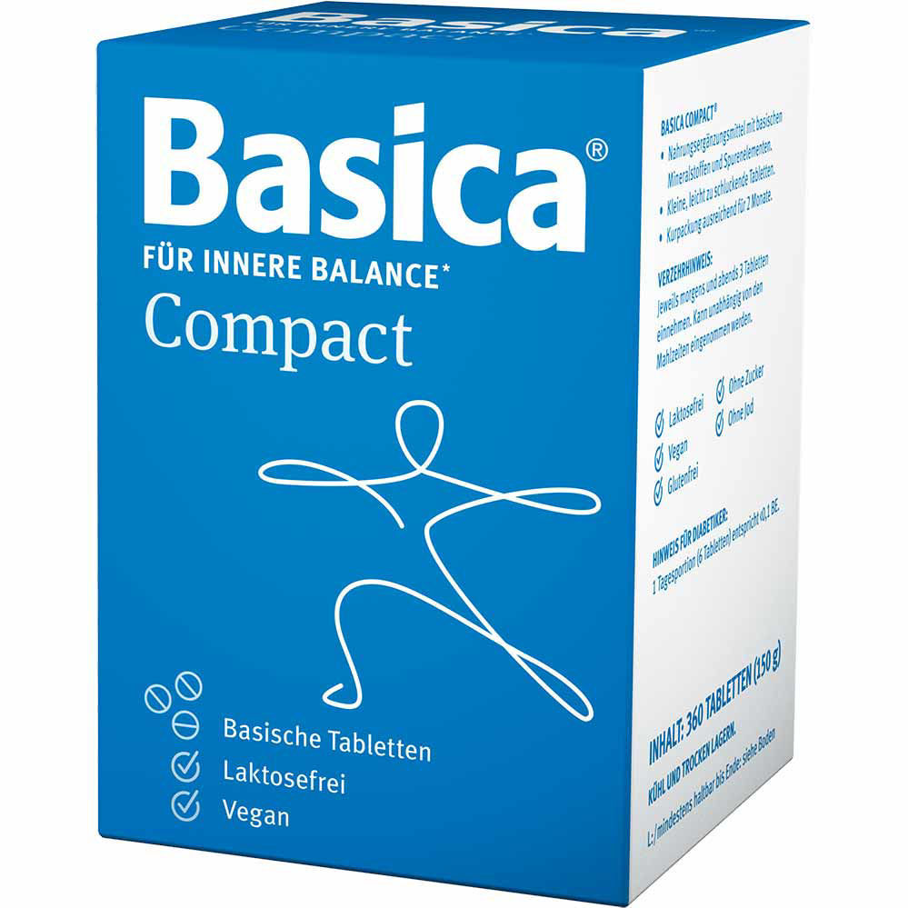 Basica Compact bazične tablete vsebujejo izravnano kombinacijo bazičnih vitalnih snovi za harmoniziranje kislinsko-bazičnega ravnotežja. Tablete so praktične za uživanje in skrbijo za dnevno izravnavo.