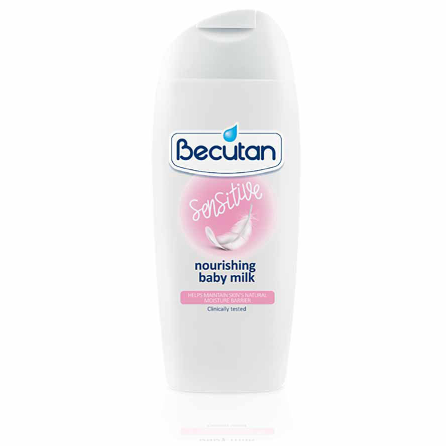 Becutan Sensitive otroško mleko za telo vsebuje edinstveno kombinacijo sestavin: lanolina, čebeljega voska, glicerina in pantenola ter cinkovega oksida, ki delujejo sinergistično in zagotavljajo intenzivno nego in vlaženje kože, kožo pa ščitijo pred negativnimi zunanjimi vplivi, kot sta veter in mraz. Becutan Sensitive otroško mleko za telo je primerna za intenzivno nego kože, predvsem pozimi. Obogatena je z maščobnimi sestavinami naravnega izvora, ki med nanosom na koži naredijo film in tako preprečijo izgubo vode s površine kože.