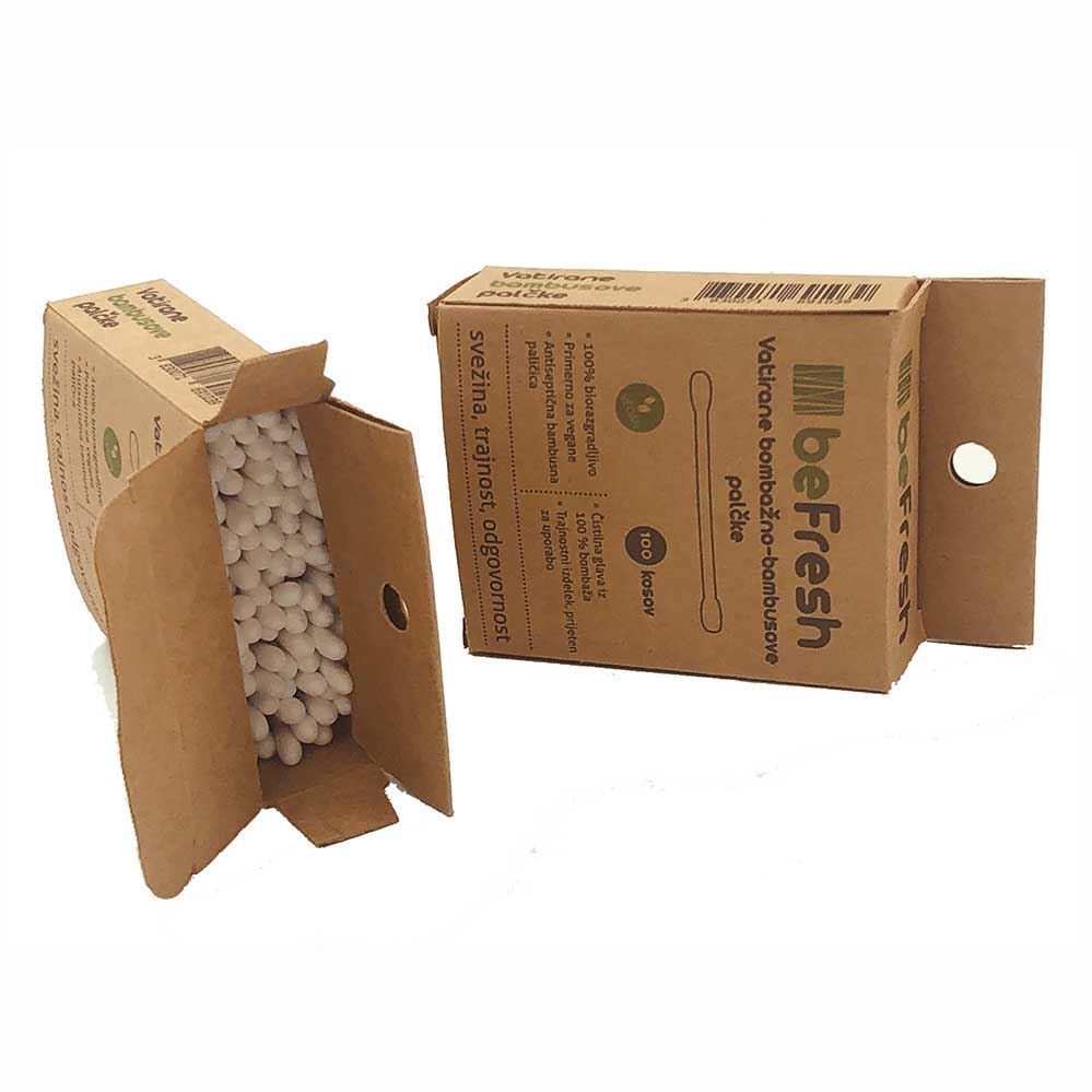 BeFresh ušesne palčke so narejene iz 100% bombaža in palčke iz bambusa.