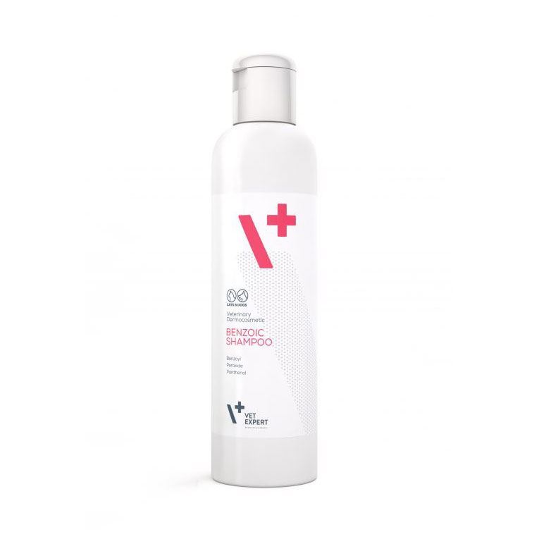 Benzoic šampon za pse in mačke je inovativen veterinarski negovalni šampon, ki je primeren za negovanje predvsem mastnejše kože in dlake psov in mačk.
