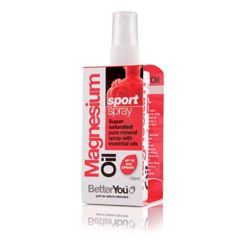 BetterYou Sport magnezijevo olje je pršilo namenjeno hitrejšemu nadomeščanju magnezijevih ionov, kar je pri vseh športnikih izrednega pomena. Med samo telesno vadbo in pospešeno presnovo se izloča velika količina mineralnih snovi, ki jih naše telo vsebuje in jih je potrebno za nadaljnje normalno delovanje organizma.