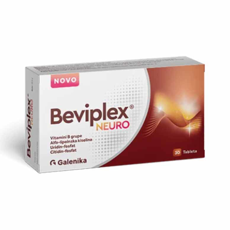 Galenika Beviplex Neuro tablete so prehransko dopolnilo, obogateno z alfa-lipoično kislino, uridinom in citidinfosfatom ter vitamini B skupine. Beviplex Neuro se uporablja kot za delovanje živčnega sistema in v stanjih povečane potrebe po zaščiti pred oksidativnim stresom. Prav tako prispeva k ohranjanju normalnega vida, zmanjšanju občutka bolečine in drugih živčnih občutkov, kot je npr. mravljinčenje. Galenika je bila ustanovljena leta 1945 in je eno izmed največjih farmacevtskih podjetij na Balkanu.