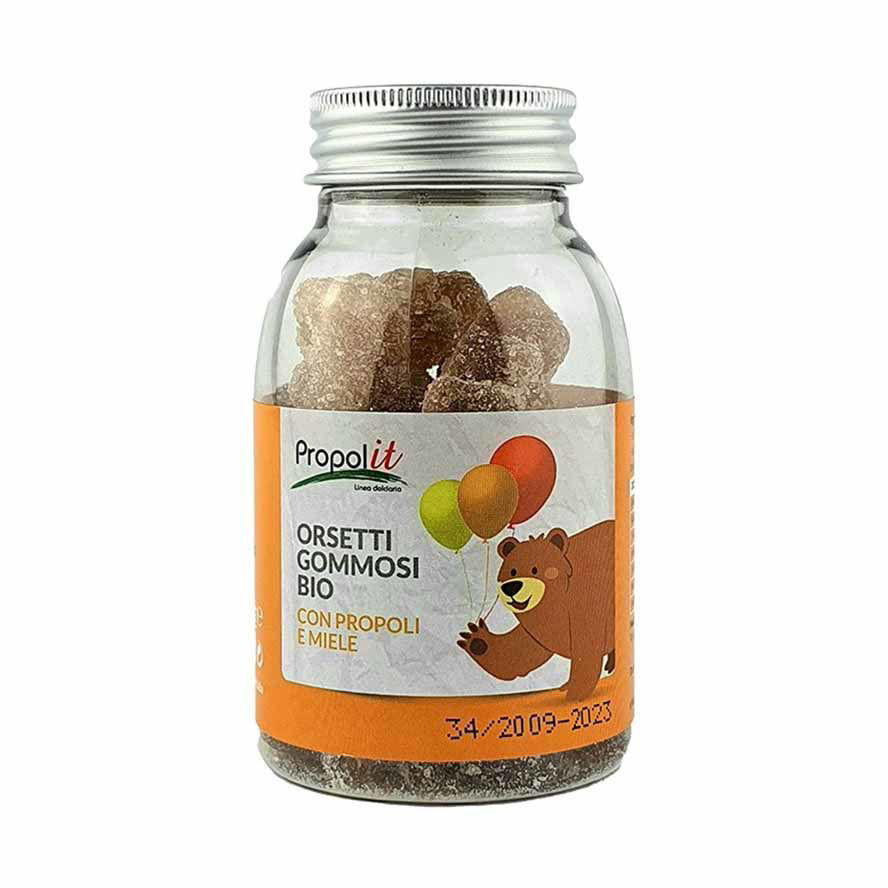 BIO MEDVEDKI žele bonboni z okusom propolisa in medu so polni sadnega in medenega okusa ter so primerni prav za vse. Ker ne vsebujejo glutena, laktoze in živalske želatine, so zdrava alternativa običajnim bonbonom. Sveži okusi jagodičevja, medu in propolisa bodo razvajali vaše brbončice, naravno prisotni vitamini pa bodo vaše telo nahranili. Bio bonboni v obliki medvedkov so ustvarjeni iz samih ekoloških sestavin, kar pripomore k zavestnemu načinu življenja.