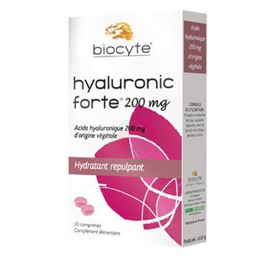 Biocyte Hyaluronic forte vsebuje po 200 mg hialuronske kisline v bsaki kapsuli. To je zelo visok odmerek hialuronske kisline, zato prehransko dopolnilo deluje zelo uspešno ter globinsko.