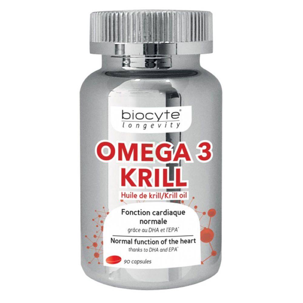 Biocyte omega 3 krill je prehransko dopolnilo bogato s krilovim oljem, ki vsebuje veliko omega 3 maščobnih kislin, ki jih človeško telo ne zmore sintetizirati samo - zato jih je potrebno nadomeščati. Prehransko dopolnilo pripomore k normalnemu delovanju srca - zahvaljujoč eikozapentaenojski kislini (EPK) in dokozaheksaenojski kislini (DHK).