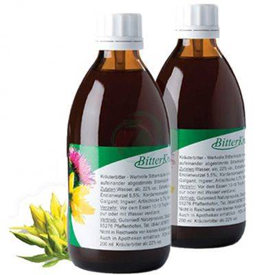 samo 10 do 15 kapljic pred obroki. Lahko jih pijemo razredčene z vodo ali sokom, za nekaj trenutkov kapljice zadržimo pod jezikom. 200 ml zadostuje za približno 6 do 8 tednov.