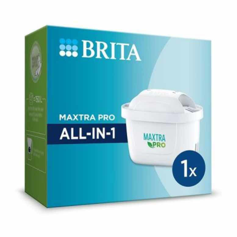 Brita Maxtra Pro All-in-1 filtrirni vložki za vodo zmanjšujejo vodni kamen in so idealni za območja s posebej trdo vodo. Inovativna 4-stopenjska filtracija z naravnim aktivnim ogljem in izjemno zmogljivim ionskim izmenjevalcem zmanjšuje snovi, ki škodujejo vonju in okusu, kot je klor, ter kovine,kot sta svinec in baker. Filtrira nečistoče nekaterih herbicidov, pesticidov in farmacevtskih izdelkov, varuje vaše naprave pred vodnim kamnom na območjih z mehko do trdo vodo ter izboljšana zmogljivost filtriranja.