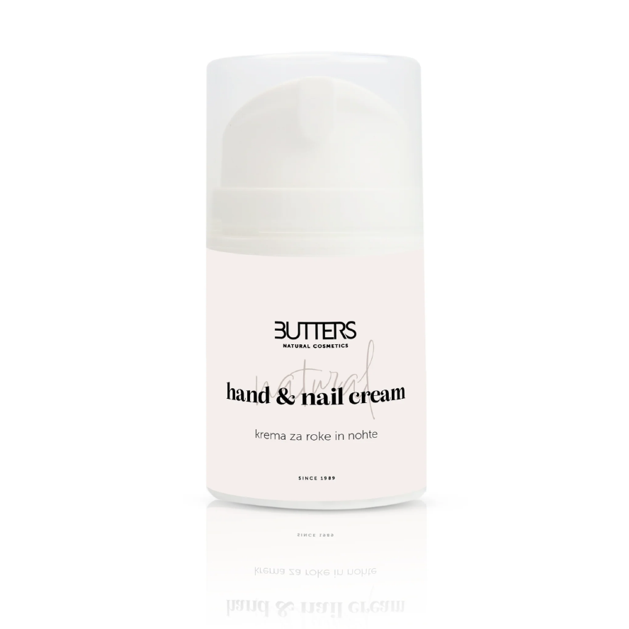 Butters krema za roke in nohte je nepogrešljiv negovalni izdelek za mehke, gladke in negovane roke ter trdne, zdrave nohte. Vsebuje hranljive sestavine, kot so proteinski izvlečki pšenice in ovsa, ki delujejo kot rastlinska alternativa keratinu za krepitev nohtov. Maslo karite, jojobino olje, olje pasijonke in mandljevo olje mehčajo, hranijo in ščitijo kožo pred izsušitvijo ter pomagajo obnavljati njeno pregrado. Aloe vera vlaži in pomirja kožo, medtem ko vitamin E deluje kot močan antioksidant, ki pomaga zaščititi in regenerirati roke. Kremo odlikuje prijeten vonj mango, hitro se vpije in ne pušča mastnega občutka. Priporočena je večkratna uporaba, še posebej po umivanju rok in za nego zelo suhe kože.