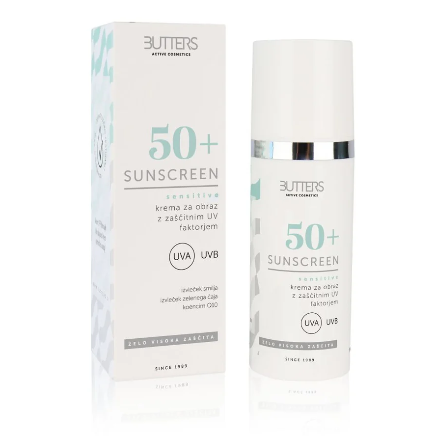 Butters sončna krema z zaščitnim faktorjem 50+ je visoko zmogljiva sončna krema, ki nudi zelo učinkovito zaščito pred UVA in UVB žarki. Formula bogata z antioksidanti, vlažilnimi sestavinami ter izvlečki, kot so immortelle, zeleni čaj, koencim Q10 in vitamin E, neguje kožo, preprečuje prezgodnje staranje in ohranja njeno vlago.