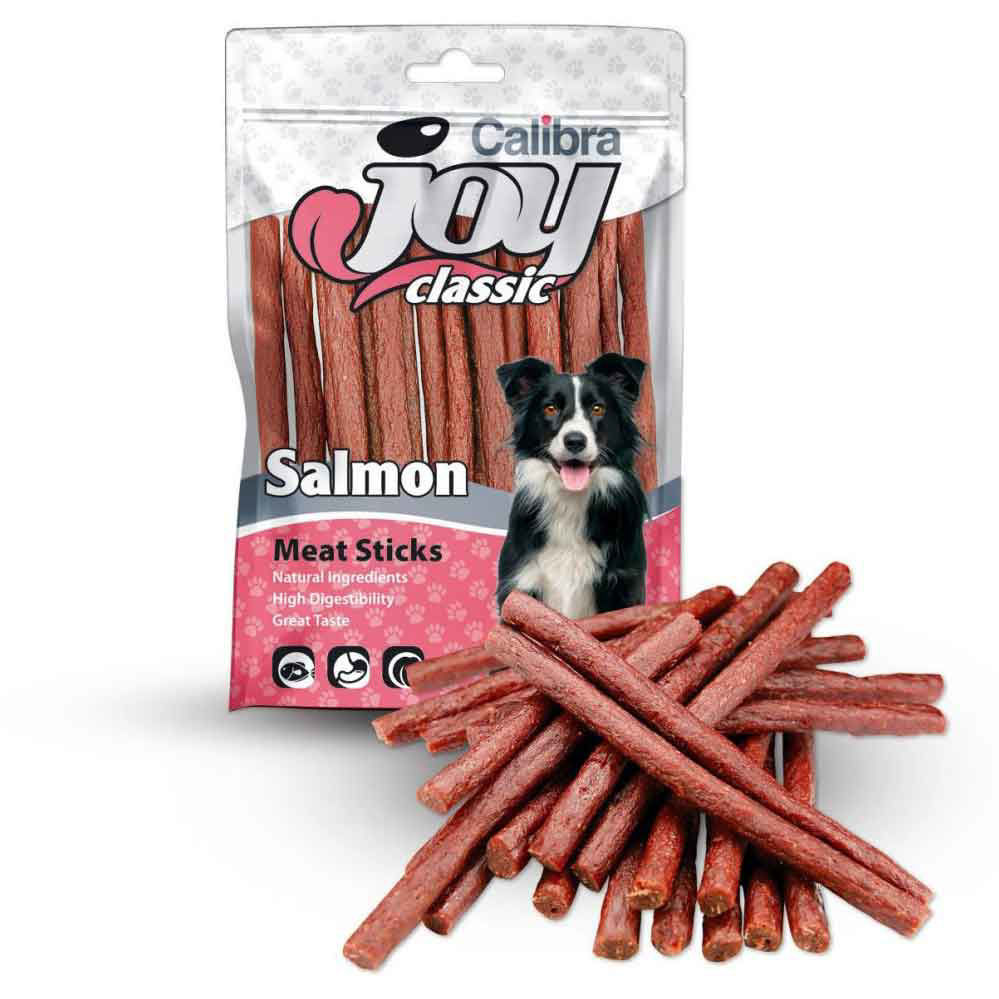 Izdelano iz ribjega mesa, natančneje lososa, ki mu je dodan še piščanec. Palčke vsebujejo kar 40% beljakovin. Zaradi dodanega lososovega mesa, so Calibra Joy losos palčke bogate z nenasičenimi maščobnimi kislinami, ki so odlične za kožo ter dlako vašega psa. Ta izdelek je brez umetnih barvil in konzervansov. Izdelano zgolj iz naravnih sestavin.