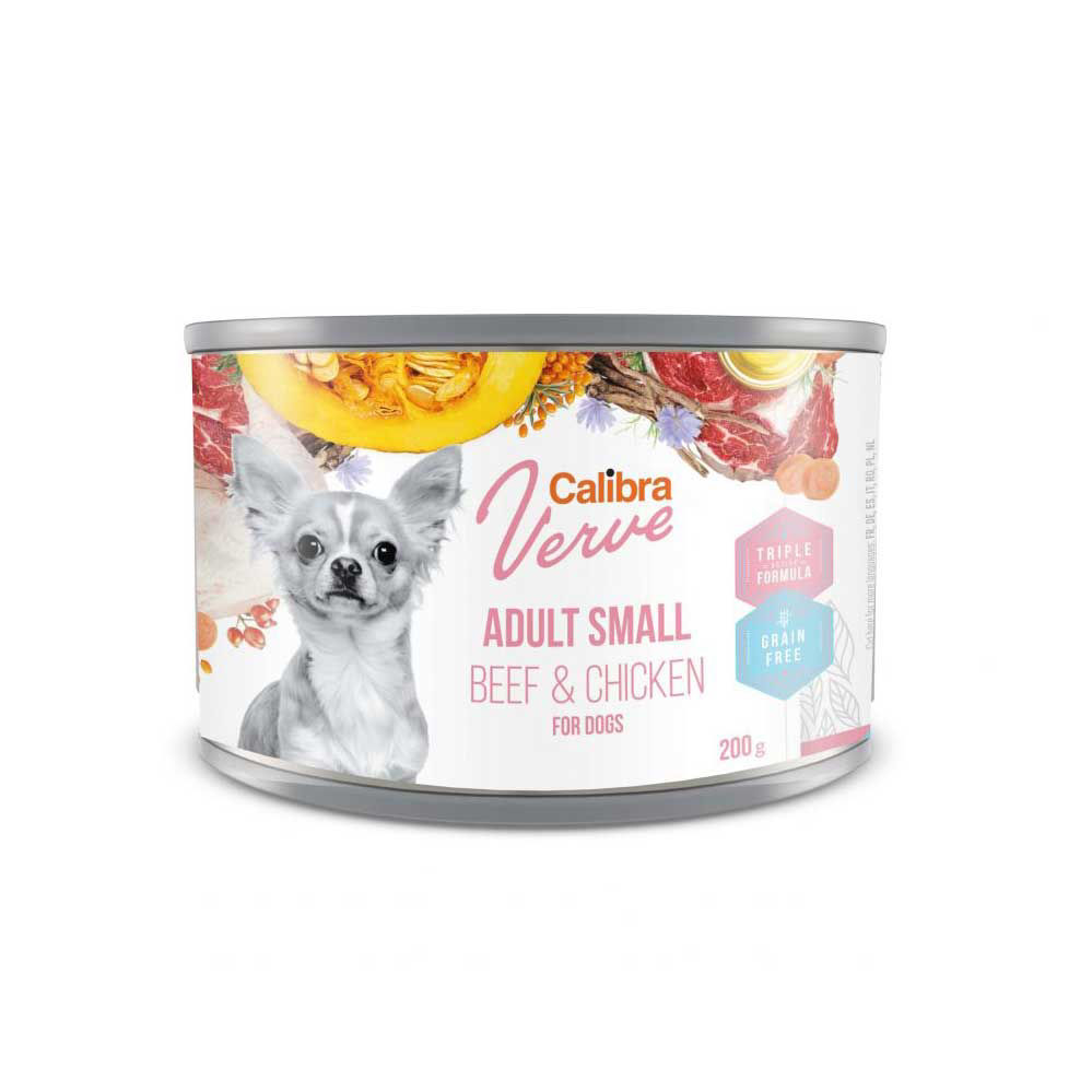 Calibra Verve Adult Small konzerva je primerna za odrasle pse manjših pasem. Na voljo v dveh okusih. Izdelano brez dodanih žit, samo kvalitetno meso.