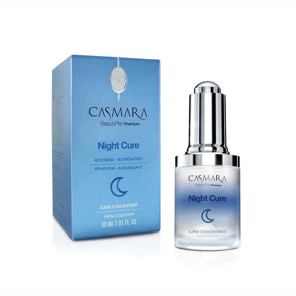 Casmara Super Concentrate Night Cure je koncentrat, ki skrbi za nočno obnovo in pomladitev. Odlična dopolnitev osnovne večerne nege obraza. Za zrelo kožo z vidnimi znaki staranja.