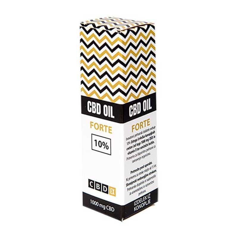 CBD kapljice CBD OIL CBDex FORTE 10% vsebujejo 10% čistega izvlečka konopljinih cvetov (1000 mg CBD) in vitamin D ter sončnični lecitin.