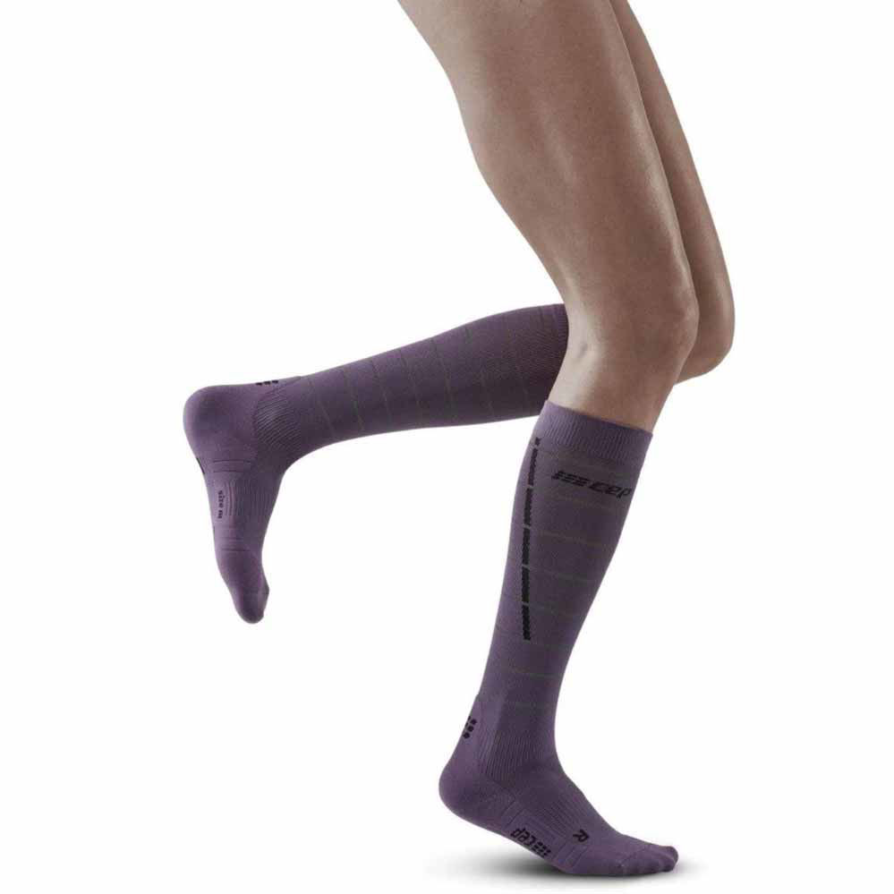 Cep Reflective Compression visoke ženske kompresijske nogavice združujejo izjemen kompresijski profil ter slog in varnost, za katero poskrbijo 360-stopinjske odsevne črte. S povečanjem krvnega obtoka mišice predelajo več kisika in hranilnih snovi, in vam tako omogočajo večjo moč in nadzor med aktivnostjo ter pomagajo preprečiti poškodbe. Visokotehnološka kompresijska vlakna mišicam dajejo maksimalno podporo in stabilnost. Nogavice so zračne in poskrbijo tudi za ohranjanje optimalne temperature telesa med vadbo.