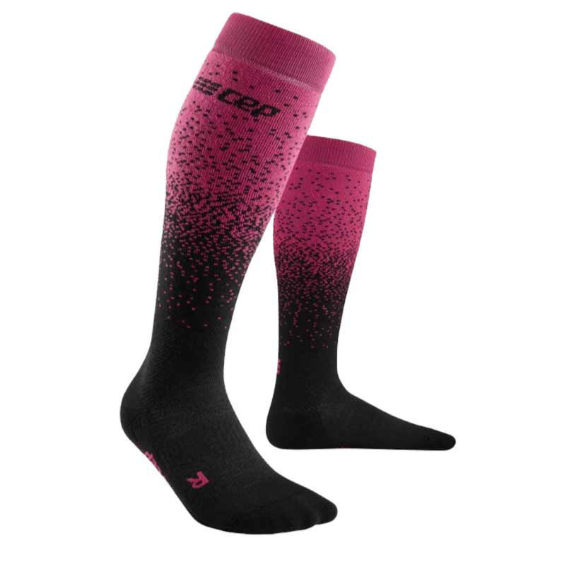 Cep Ski Snowfall ženske smučarske kompresijske nogavice prinašajo izjemno udobje in prijetno toploto v smučarskih čevljih. Prijetnemu občutku svoj pečat dodajajo plišasta termo vlakna in merino volna. Originalna medi kompresija pospeši kroženje krvi po celotnem telesu, tudi v kapilarah. Posledica pravilno razporejena kompresije je dodatna oskrba mišic s kisikom in hitrejše izločanje laktatov, kar prispeva k hitrejši regeneraciji. Cep Ski Snowfall nogavice se ne gubajo, se odlično prilegajo nogi in poskrbijo za udobje preko celega dneva.