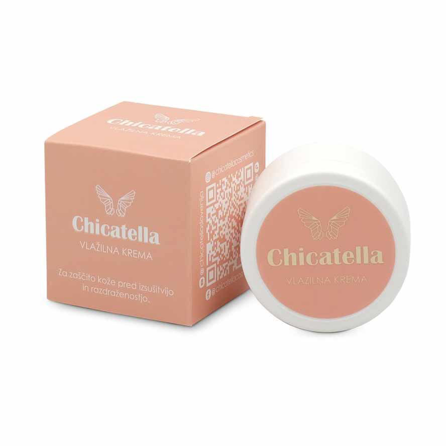 Chicatella vlažilna krema za mešano in dehidrirano kožo je idealna izbira za ljudi, ki se soočajo s pomanjkanjem vlage v koži. Naravna formula izdelka vrača občutek udobja in nežnosti, tako, da ustvarja mikrobiološko ravnovesje na kožni povrhnjici. Chicatella vlažilna krema za nego mešane in dehidrirane kože pomaga navlažiti kožo na obrazu in telesu, lajša draženje, blaži rdečico, izenačuje kožni ten in pomirja kožo po britju pri moških in ženskah. Chicatella vlažilna krema je namenjena za celotno družino vključno z otroci od tretjega meseca starosti dalje.