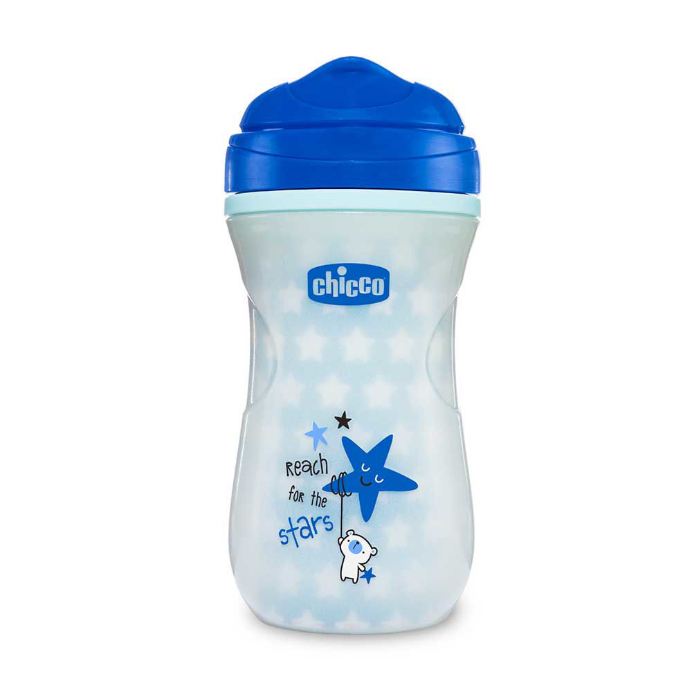 Chicco lonček Shiny Cup je lonček za pitje otrok, ki so starejši od 12 mesecev. Na voljo v modri ali roza barvi. Lonček se sveti v temi. Ohranja tekočino v idealni temperaturi.