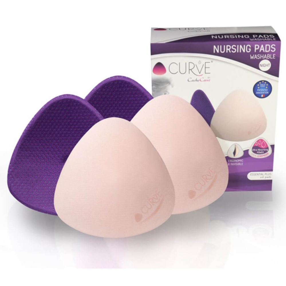 Curve by Cache Cœur nočne pralne prsne blazinice so zasnovane za udobno zaščito med nočnim dojenjem ali spanjem. Te blazinice so večkrat uporabne in narejene iz mehkega, visoko absorpcijskega materiala, ki učinkovito vpija mleko ter preprečuje prepuščanje, kar omogoča suho in udobno noč. Zaradi svoje zasnove so anatomsko oblikovane, kar zagotavlja, da se dobro prilegajo dojki in nudijo dodatno zaščito proti iztekanju mleka. Enostavno se perejo in ponovno uporabljajo, kar predstavlja trajnostno in ekonomično rešitev.