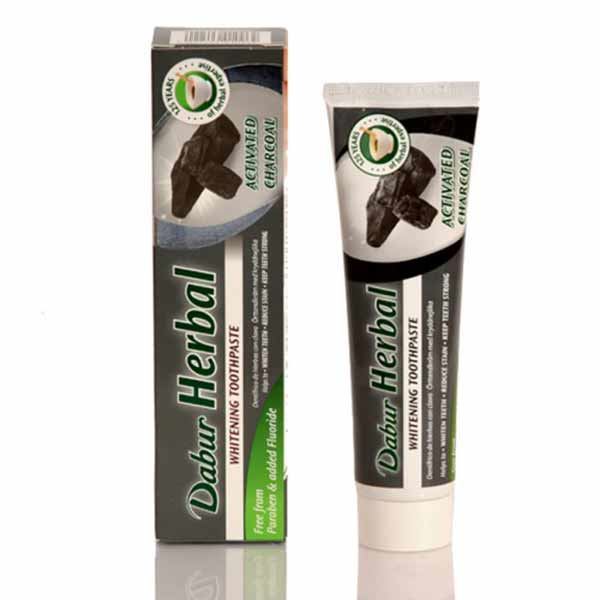 Dabur belilna Aktivno oglje zobna pasta je zobna pasta, ki vsebuje aktivno ali medicinsko oglje, ki ima dolgo in dokazano zgodovino kot učinkovita in močna sestavina, ki izdatno pripomore k ustni negi saj uspešno odstranjuje dejavnike obarvanja zob ki jih povzročajo tanini prisotni v kavi, vinu, pravem čaju, začimbah…