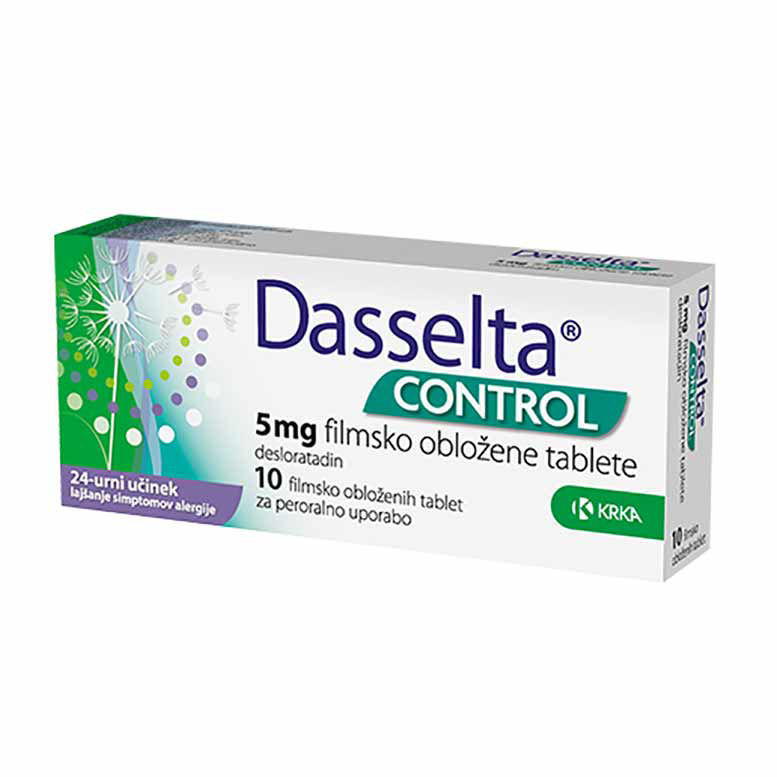 Dasselta Control 5 mg je zdravilo, ki se pri odraslih uporablja za lajšanje simptomov alergije. Zdravilo vsebuje učinkovino desloratadin, ki je antihistaminik. Zdravilo Dasselta Control 5 mg ne povzroča zaspanosti in vam bo pomagalo pri lajšanju alergijske reakcije in simptomov. Zdravilo Dasselta Control 5 mg lajša simptome alergijskega rinitisa (vnetje nosnih poti zaradi alergije, npr. seneni nahod ali alergija na pršice). Ti simptomi vključujejo kihanje, izcedek iz nosu ali srbenje nosu, srbenje ustnega neba, srbeče, rdeče ali solzne oči.