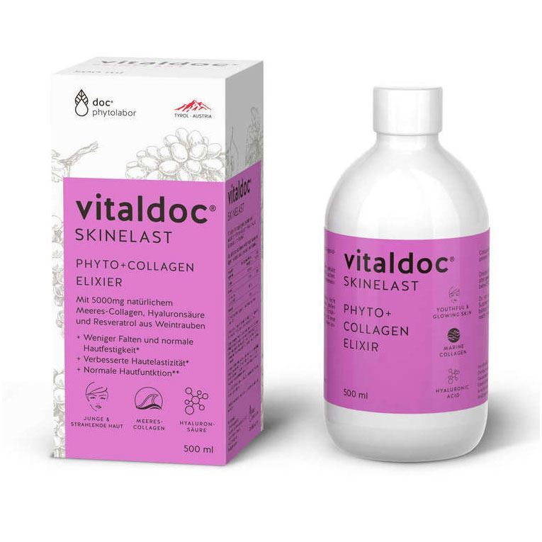 DermisDoc SkinElast tekočina kolagenski eliksir je inovativno prehransko dopolnilo, ki vsebuje kar 5 g naravnega morskega kolagena, hialuronske kisline in resveratrola iz grozdja v dnevnem odmerku. Vsebuje tudi vitamin C, ki ima vlogo pri nastajanju kolagena za normalno delovanje kože ter pri zaščiti celic pred oksidativnim stresom.