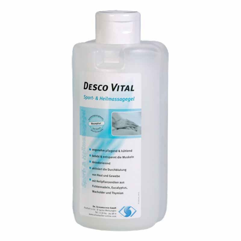 Desco vital hladilno masažni gel je namenjen hladilni masažni negi ter za intenzivno sproščanje mišic, muskulature ter vezivnega tkiva.