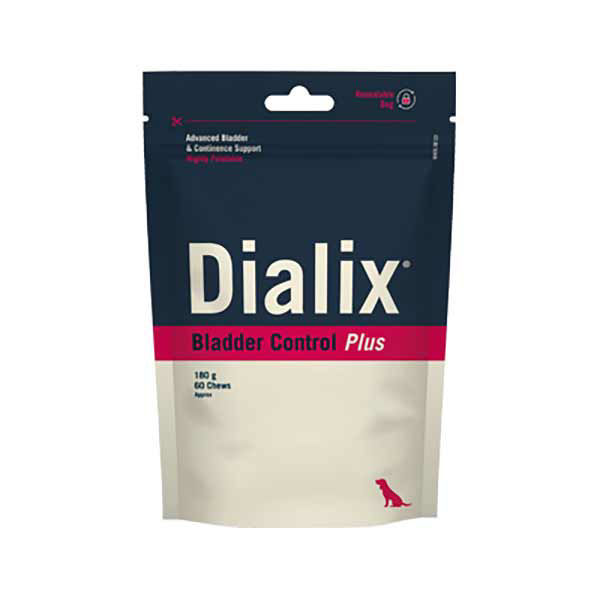 Dialix Bladder Control Plus je dopolnilo za pse, primerno predvsem za tiste pasme, ki so sterilizirane in potrebujejo podporo pri uhajanju urina.
