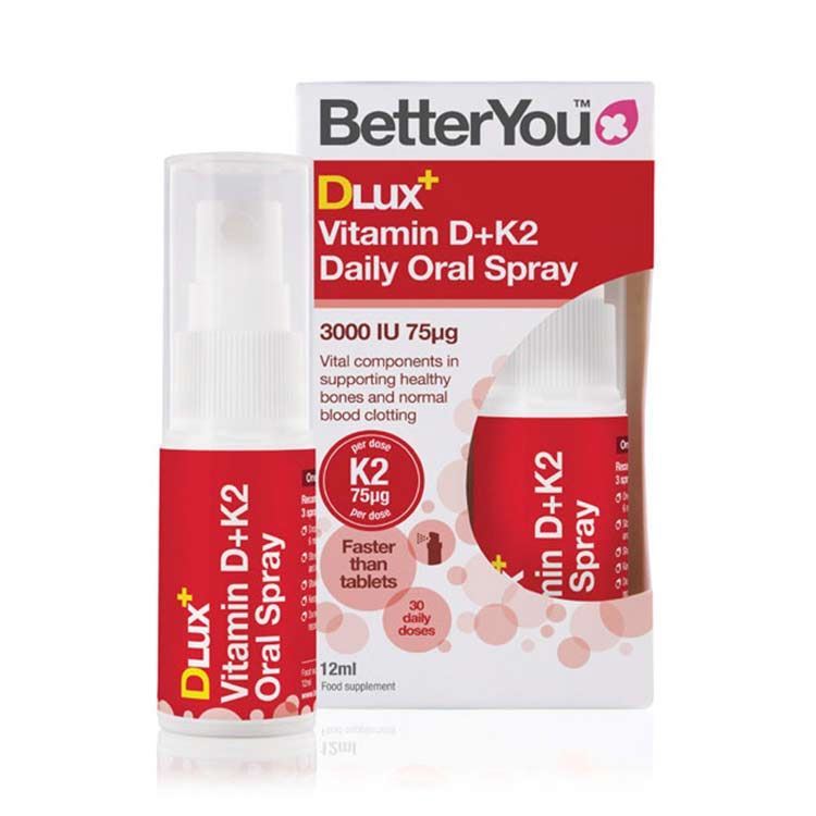 • 3 razprški s sprejem zagotavljajo 3000IU (75μg) vitamina D in 75 μg vitamina K2