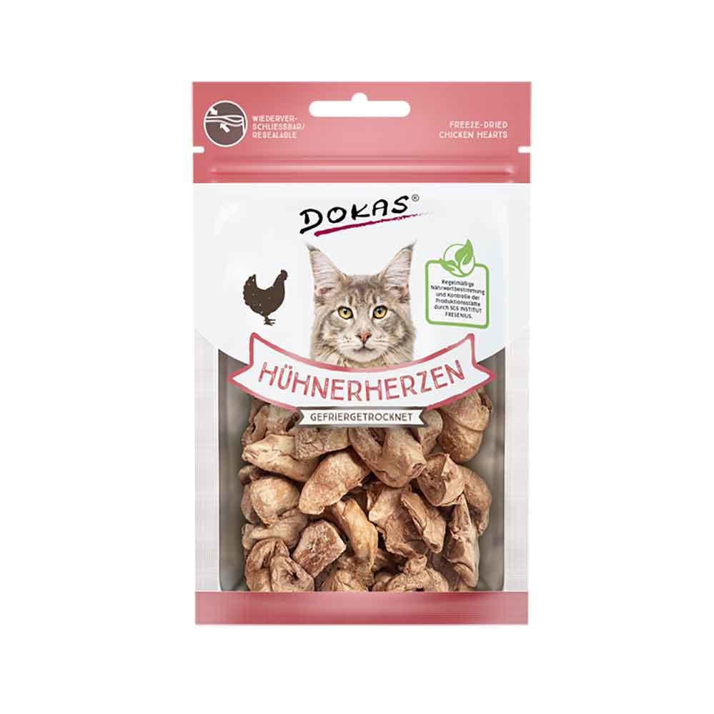 Dokas prigrizek za mačke piščančji srčki so več kot okusen prigrizek za vašo mačko. To so dehidrirani piščančji srčki. Povsem naraven in okusen prigrizek