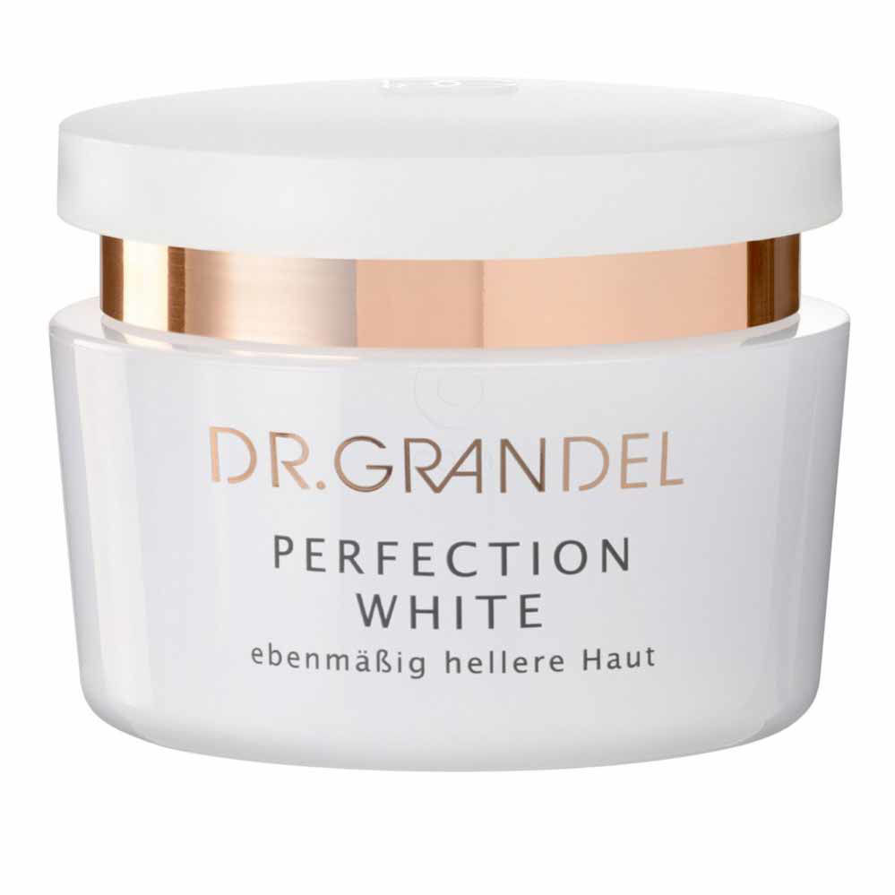 Dr. Grandel Perfection White posvetlitvena krema za obraz z aktivnim belim kompleksom in vitaminom C ustvari enakomeren in svetlejši ten kože. Kožo dodatno ščiti in krepi pred negativnimi vplivi okolja ter deluje regenerativno. Redna uporaba ustvarja svetlejši odtenek kože in se lahko dodatno uporablja za dopolnitev estetsko-medicinskih aplikacij. Dr. Grandel Perfection White posvetlitvena krema za obraz je namenjena vsem, ki si želijo še svetlejšo kožo in brezhibno polt.