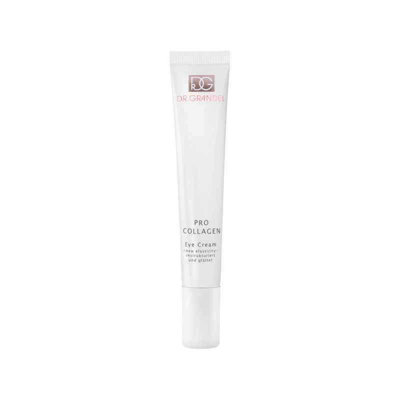 Dr. Grandel Pro Collagen krema za predel okoli oči pozitivno vpliva na sintezo kolagena in krepi občutljiv predel okoli oči. Zgladi linije in gube ter zmanjša znake utrujenosti, kot so temni kolobarji. Vitamin C je zelo znan lepotni vitamin z najboljšim antioksidativnim učinkom proti prezgodnjemu staranju kože z zaščito pred zunanjimi stresnimi dejavniki (npr. prostimi radikali). Pseudo Collagen je biotehnološki ekvivalent kolagena (glikoprotein), izdelan iz kvasa, za optimizacijo profila vlažnosti kože za gladek in mladostno svež sijaj.