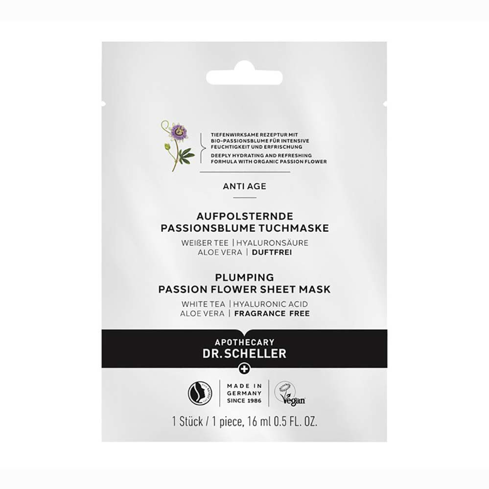 Dr. Scheller maska za obraz s pasijonko v obliki krpice je zelo enostavna za uporabo in se odlično prilagaja konturam obraza. Kakovostna maska Dr. Scheller je obogatena z učinkovitimi naravnimi sestavinami in sicer z bio pasijonko, belim čajem, hialuronsko kislino in aloe vero. Te aktivne naravne sestavine kožo navlažijo, izboljšajo njeno naravno elastičnost in ji pričarajo živahno, bolj čvrsto in enakomerno polt. Dr. Scheller maska za obraz s pasijonko z novo ter izboljšano formulacijo ne vsebuje alkohola, dišav, silikonov, mineralnih olj, parabenov in mikroplastike.