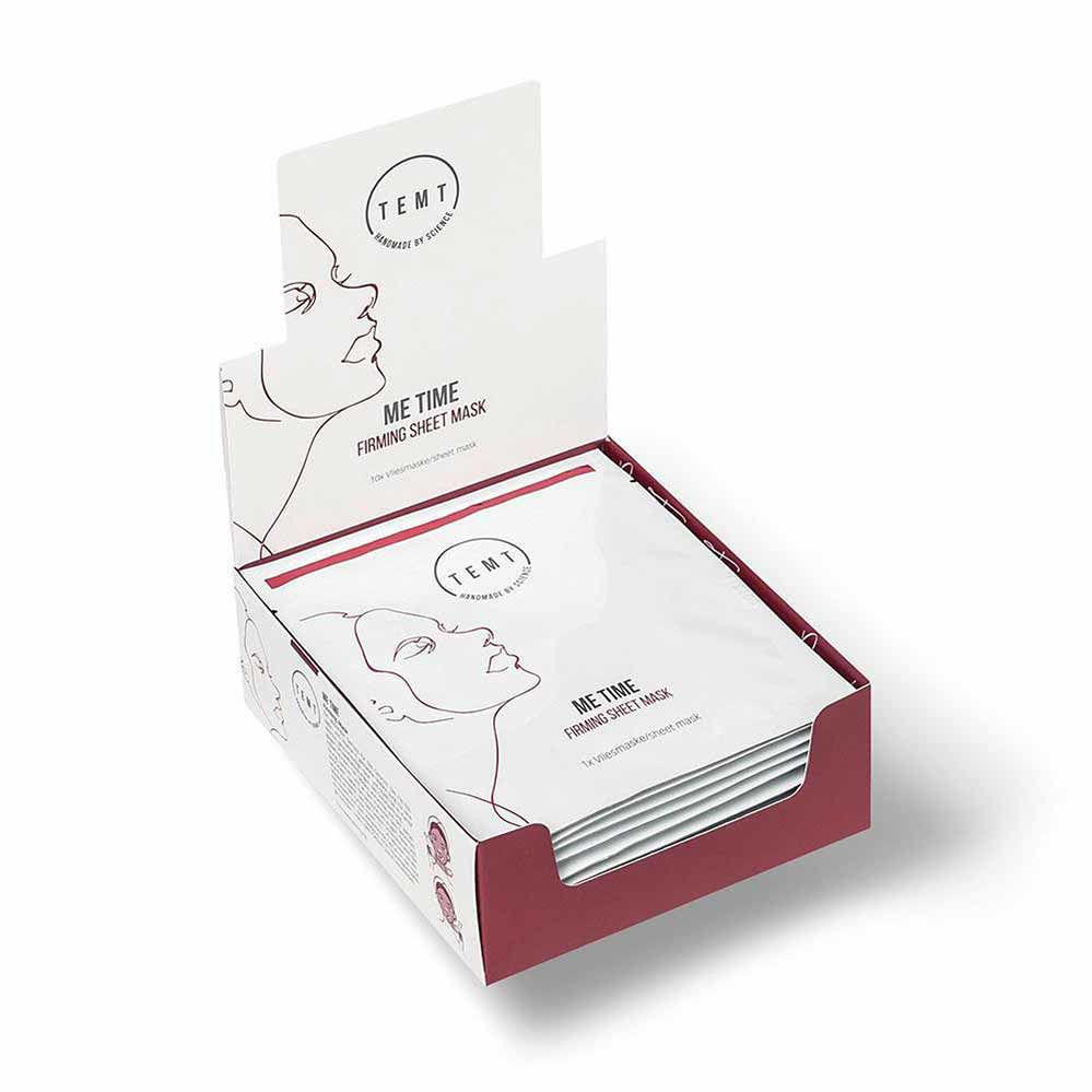 Dr. Temt Me Time Firming Sheet maska za obraz podpira naravne funkcije kože. Formulacija z vitaminom E in morskim kolagenom obnavlja naravne zaloge vlage v koži, rezultati pa so zmanjšanje gub in napet, čvrst tonus kože. Kolagen kožo spodbuja, da ustvari lastno vlago in se obnavlja na način, kot se je obnavljala v mladosti. Vitamin E, pridobljen iz sojinega in repičnega olja, pa deluje kot naravni antioksidant in ščiti površino kože. Dr. Temt Me Time Firming Sheet maska za obraz kožo okrepi in jo naredi mehko ter prožno.
